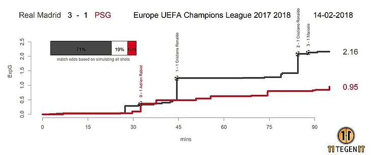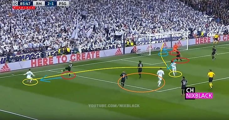 Асенсио в очередной раз блестяще разбирается на фланге и делает гениальный пас на Марсело, Менье не в состоянии сблизится с ним и просто поднимает ногу. Рабью и Вератти кроют вдвоём одного Бэйла, Маркиньос никак не мешает вбегающему бразильцу, а Ареоля зевает довольно простой удар в ближний угол, занимая неверную позицию.