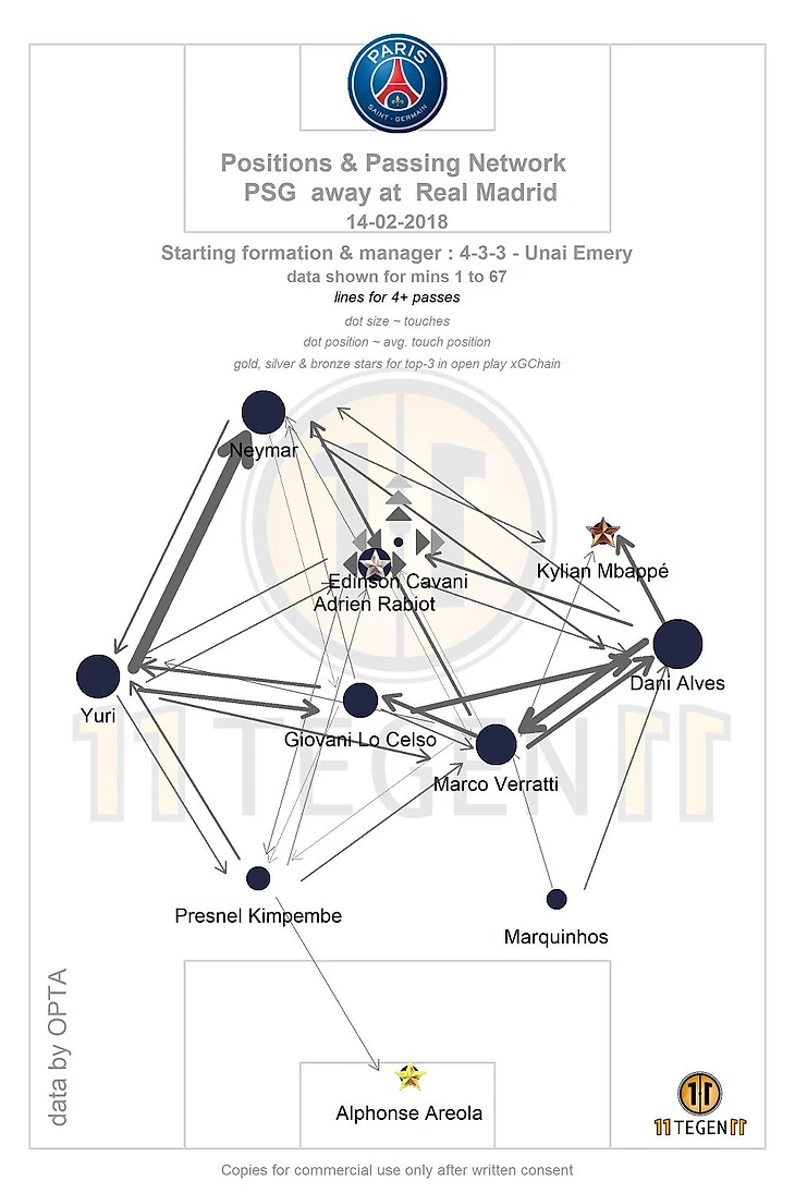 Его ПСЖ начал куда более перспективно, парижане грамотно развивали атаки, использовали фланги и то, что Марсело задерживался на чужой половине поля. Но мяч всё никак не мог найти Кавани, и объяснить это довольно легко — отсутствие ЦАП-а и Неймар. По мне Эмери этого так и не понял, и просто заменил Эдинсона на Менье (WTF, ничья 1-1, зачем Менье!? Неужели ПСЖ устраивает такой результат?), вместо того, чтобы выпустить за место Ло Чельсо Дракслера или Ди Марию. Ну а Неймар банально перетягивал одеяло на себя, совершая кучу обводок, вместо того, чтобы пасовать партнёрам.