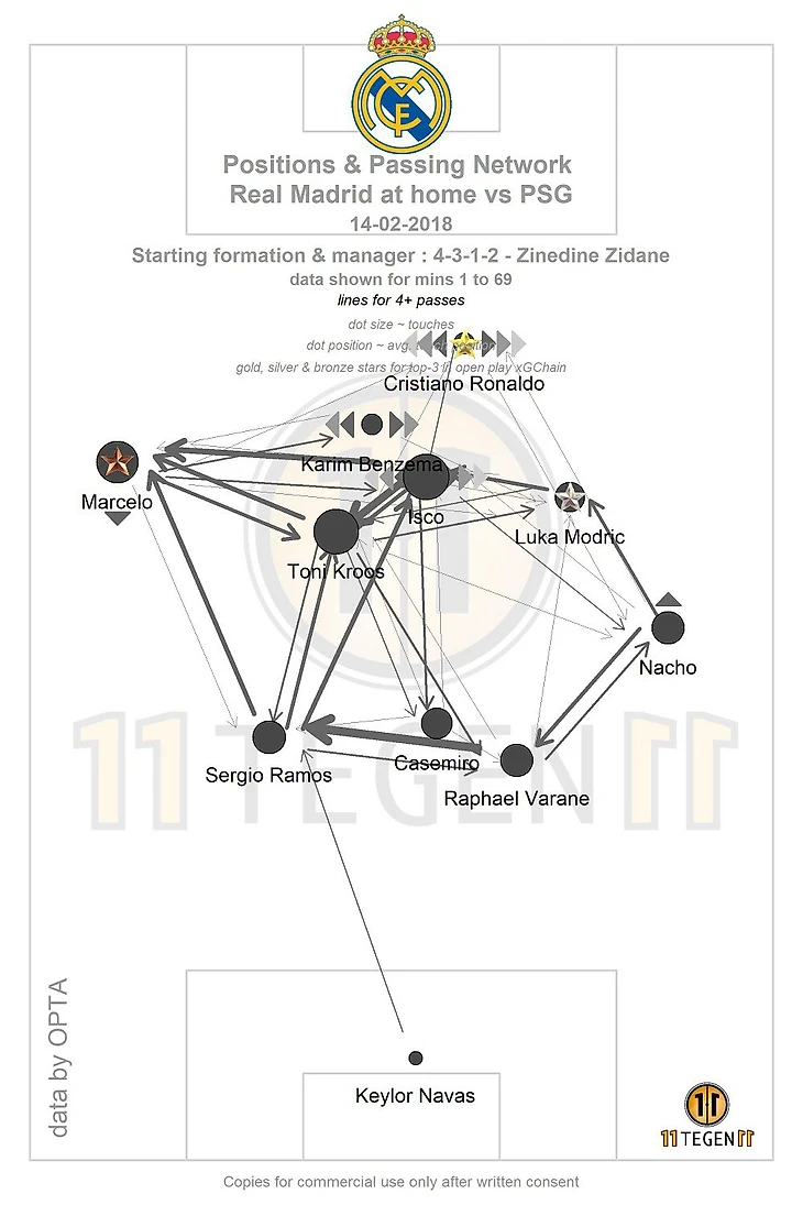 Отдельно хочется отметить игру Иско. Схема 4-3-3 ему неудобна, а вот в той роли, в какой он был вчера, испанец прекрасен. Как и Кроос, Аларкон сделал 100% (!) точных передач, несколько ключевых отборов, помогал партнёрам по всему фронту атаки и заработал очень перспективный штрафной: