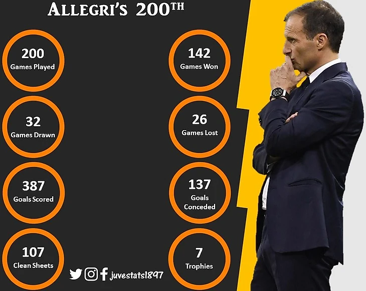 Возьмем за пример недавнюю солидную дату Макса. За 200 матчей во главе "старой синьоры":