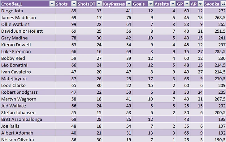 Нелсон Оливейра 8.0 бьет-бьет, да не забивает. Статистика по ударам впечатляет, он находится высоко даже без рез. действий. Рано или поздно его должно прорвать. Так что, вполне можно взять его и верить, что удары конвертируются в голы. А вот его одноклубник Мэддисон 5.5 отметился 2 голами в последних 3 матчах. Да и вообще он на подъеме, вот даже и пенки стал бить. Кстати, им ранее интересовались более статусные клубы.
