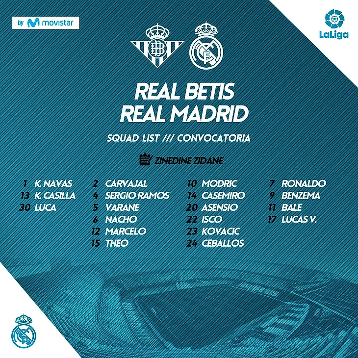 Заявка «Реала» на матч против «Бетиса»