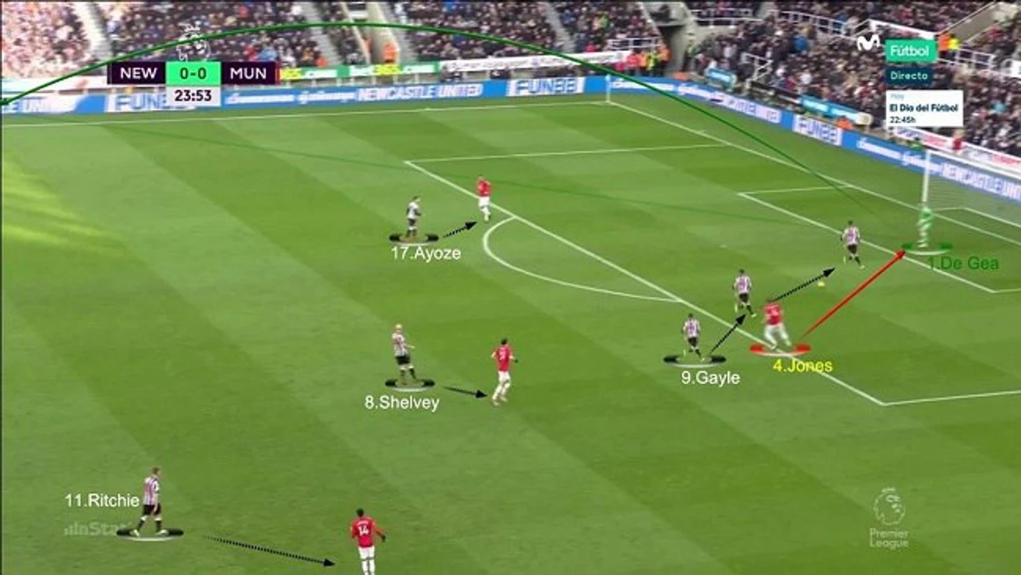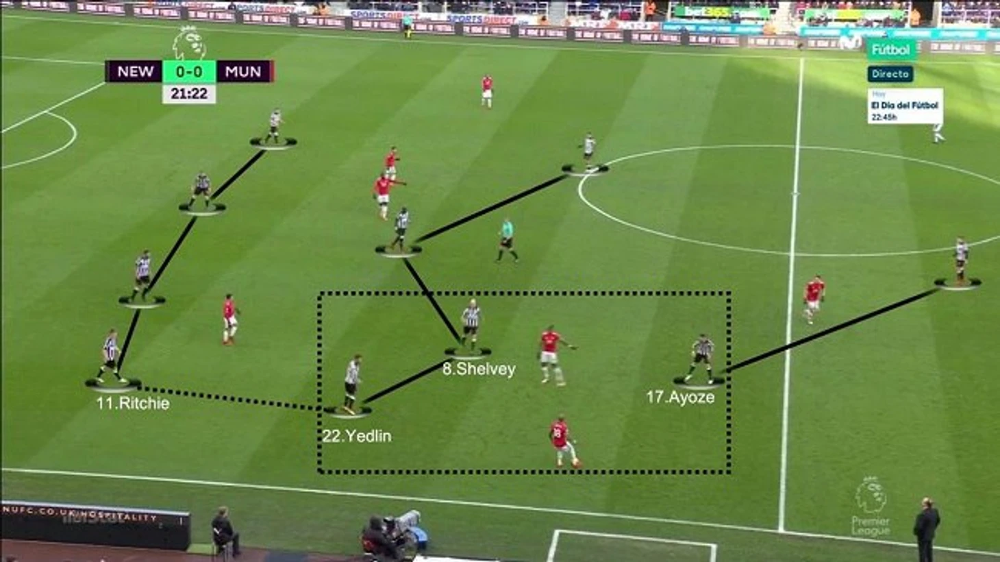 Поскольку потерявший доверие Бенитеса Хоселу оказался на лавке, Ислам Слимани – в лазарете, а Александр Митрович – в «Фулхэме», на вышеупомянутую пару легла нелегкая обязанность исполнять роль типичных «столбов» тогда, когда это необходимо, поскольку ни Гейл, ни Перес априори не подходят для освоения подобного функционала. Лучше всего с этой задачей справлялся Мохамед Диаме, у которого получилось несколько раз эффективно выиграть борьбу у футболистов соперника и отдать мяч на опустившегося ниже нападающего (Перес/Гейл), имеющего перед собой достаточно свободного пространства для развития наступления.