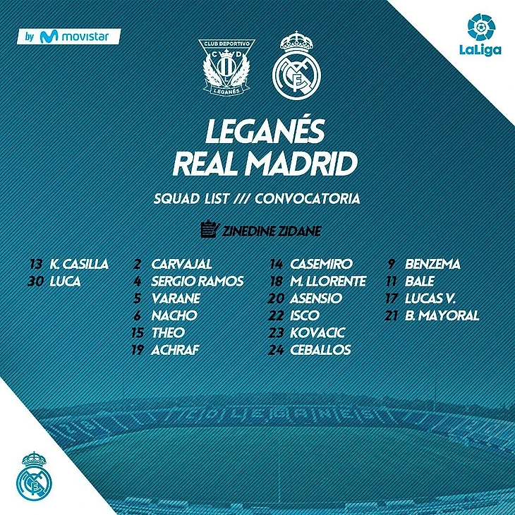 Заявка Реал Мадрида на матч: