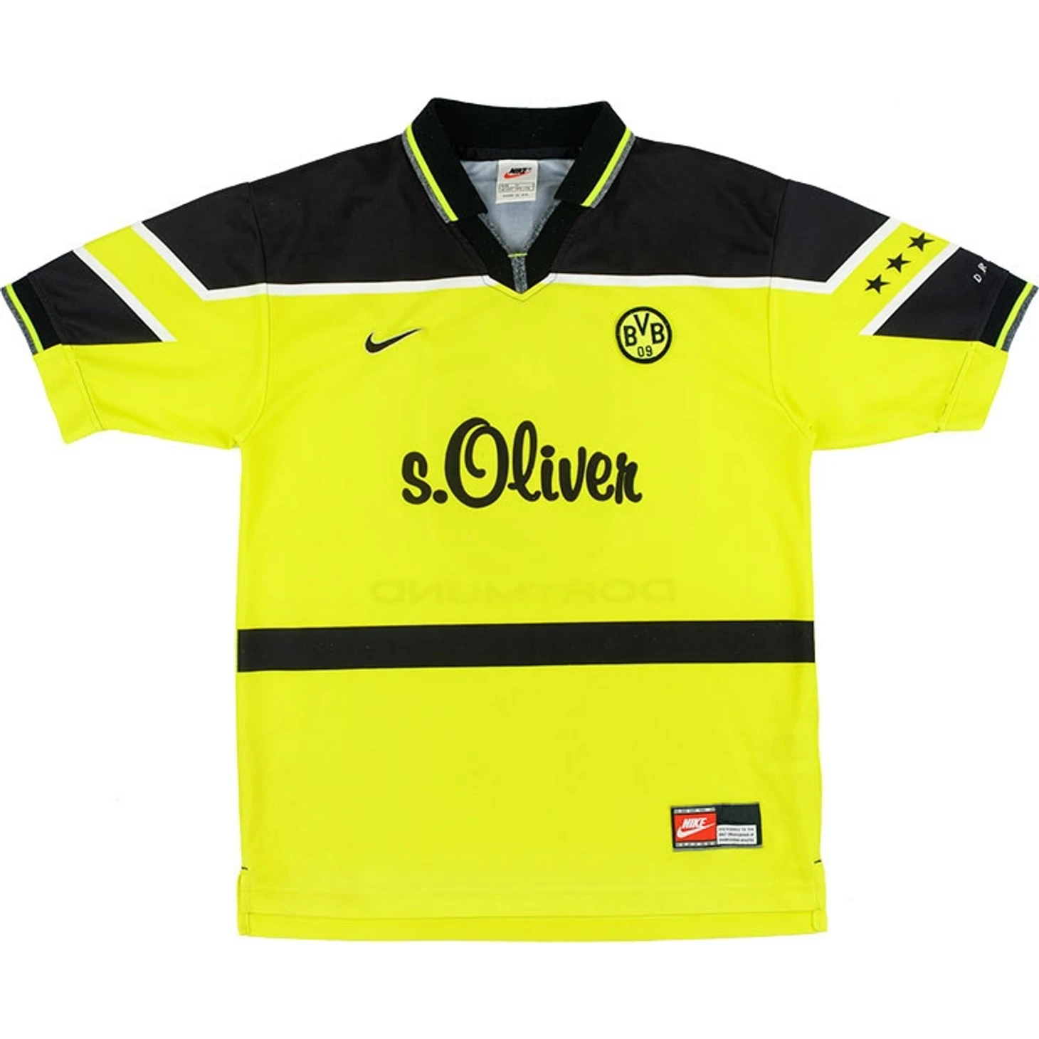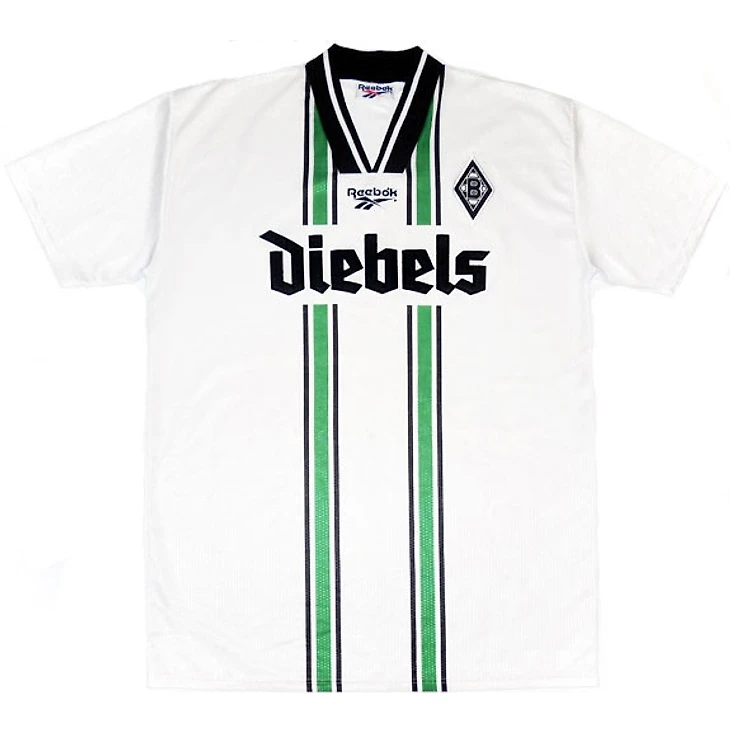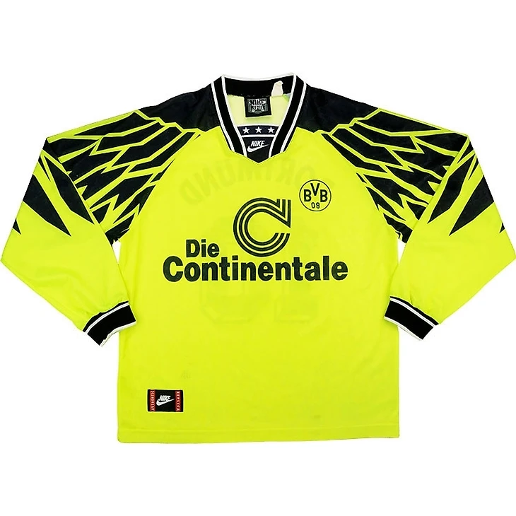 Этот вариант уже не такой смелый, как тот, который выше, но тоже сразу всплывает в памяти у поклонников немецкого футбола и футбола вообще. Тут и логотип титульного спонсора, по которому сразу вспоминается этот комплект формы и победа в финале над «Ювентусом», и Риккен, празднующий гол уже через несколько секунд появления на поле.