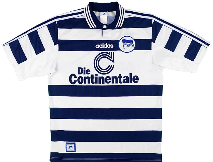 Помимо того, что форма сама по себе выглядит очень хорошо. На форме можно найти много любопытных элементов. Если логотип титульного спонсора, состоящий из трех полос это совпадение, то полоски на воротнике, отлично рифмуются с тремя полосками на плечах. Ну и вообще темно-синие горизонтальные полоски на мой взгляд отлично подходят «Герте».