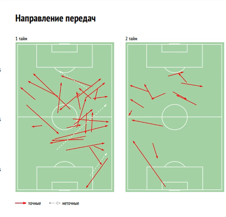 При этом обоим не хватало выразительности ни в одном из компонентов. Глушаков и Пашалич выполнили 20 и 30 конструктивных передач соответственно, что обычно совокупно исполняет только один Фернандо, а в чужой трети появлялись эпизодически (всего 15 и 11 ТТД на этом участке поля). И это главный фактор, по которому можно судить о стремлении «Спартака», прежде всего, обезопасить себя, а не бросаться вперед большими силами со стремлением забить как можно больше во чтобы то не стало.