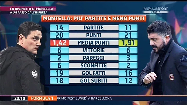 Premium Sport: Статистические сравнения Винченцо Монтеллы и Дженнаро Гаттузо в текущем сезоне в качестве наставников «Милана»