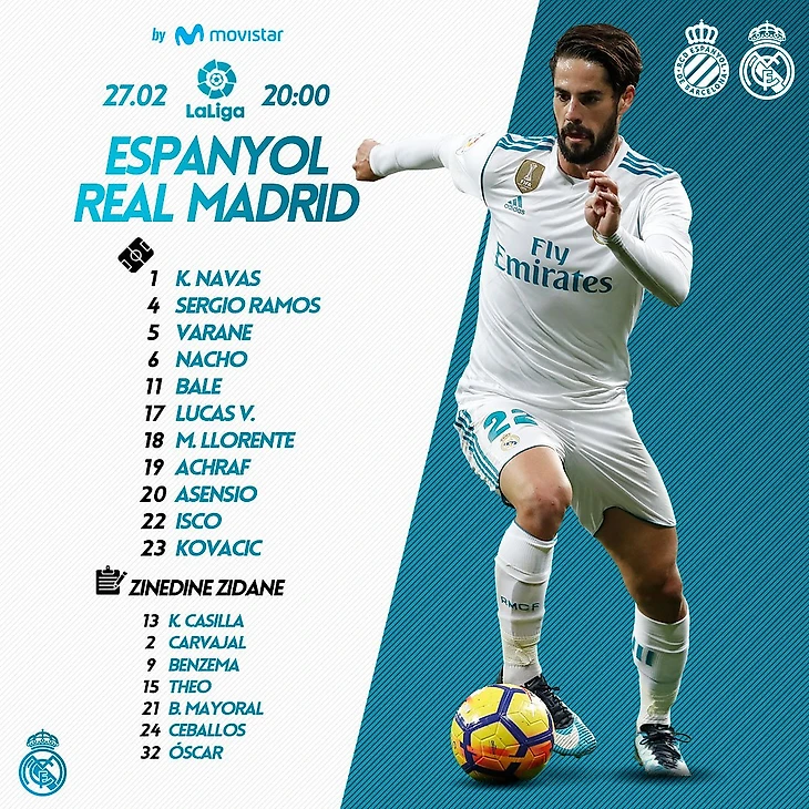 В этом матче Зидан снова дал отдохнуть Криштиану. Компанию ему в этот раз составил Каземиро, который также получил заслуженный выходной.