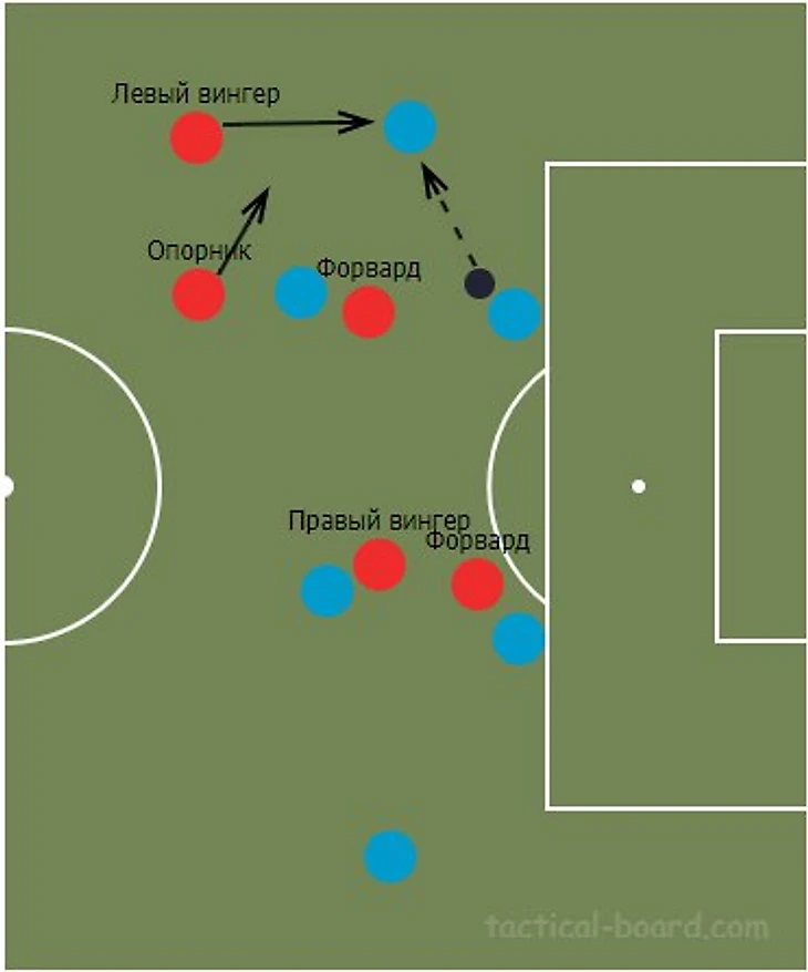 Пройдет ли подобный манёвр против "Зенита" - вопрос спорный. Дело в том, что фулл бэки "Сине-Бело-Голубых", получая мяч, отдают длинную передачу в полуфланг. С одной стороны, ее достаточно легко будет тут же перехватить, но, с другой, - если она пройдет, то слишком много игроков останутся отрезанными.