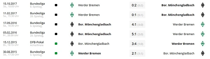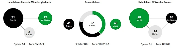 "Боруссия" выиграла четыре последних матча против "Вердер" с общей разницей мячей 12:2