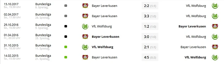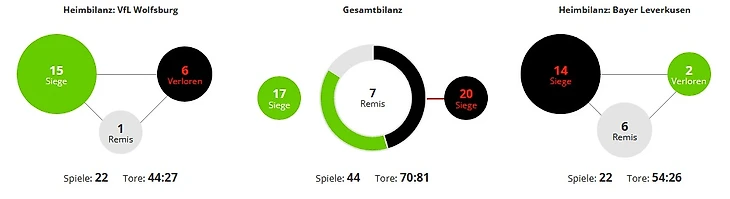 Начиная с сезона 2013/14 в матчах между "Байером" и "Вольфсбургом" забивается в среднем 4,6 гола за игру
