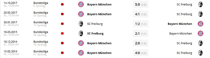 *Gesamtbilanz – общий баланс, Нeimbilanz - баланс игр дома, Remis - ничьи, Siege - победы, Тоге - голы