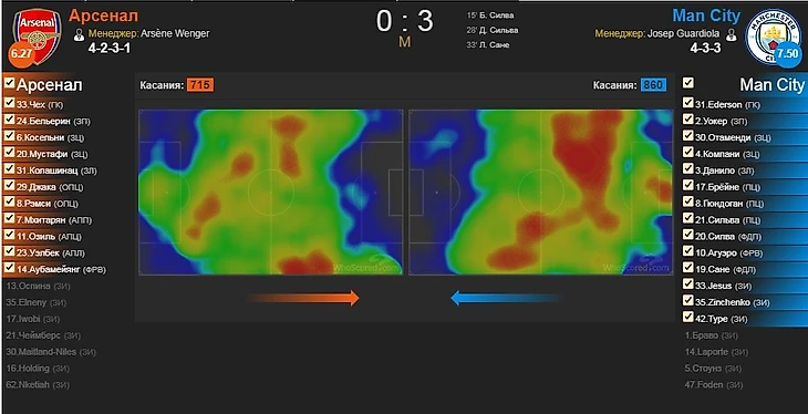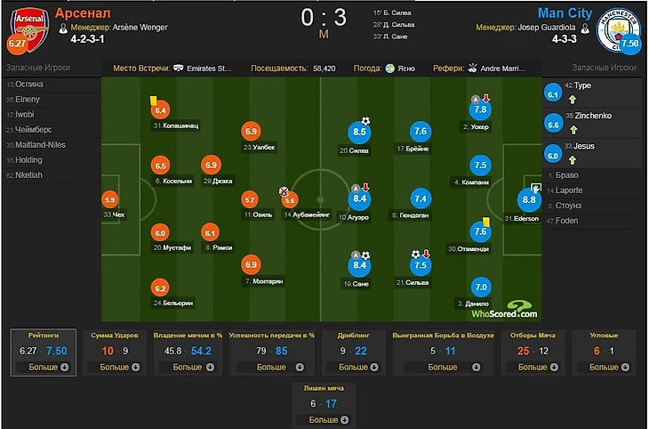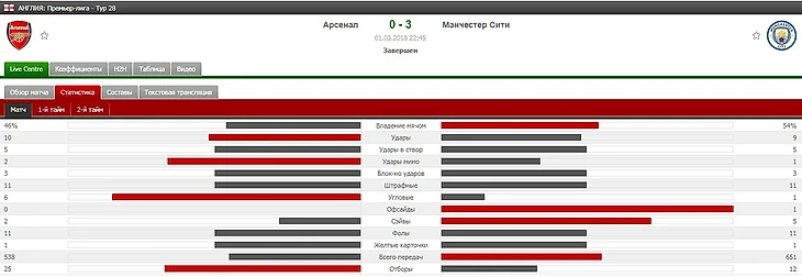 Уничтожение Арсенала? или равная игра. Статистический итог матча Арсенал - Манчестер Сити