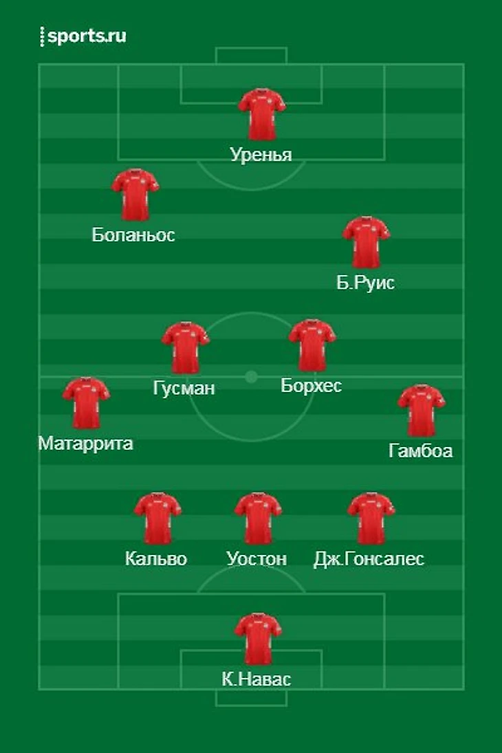 К.Навас - Дж.Гонсалес (Акоста), Уостон, Кальво (Дуарте) – Гамбоа, Борхес, Гусман (Асофейфа), Матаррита (Овьедо) – Руис, Боланьос (Венегас) – Уренья (Х.Кэмпбелл)