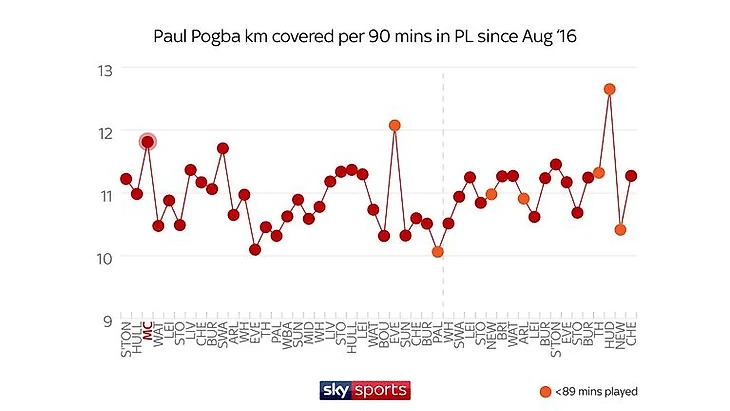 В августе 2016-го в матче против «МанСити» Поль покрыл достаточно большое расстояние, но в актив тот матч он явно занести не сможет. А вот против «Кристал Пэлас» он бегал меньше, но был полезен.