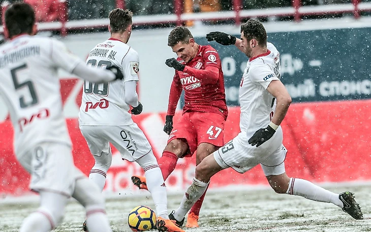 Команды вышли играть так, словно плоскость газона – по-майски сочно зеленая. Здесь интересны два статистических показателя. Первое – соотношение коротких передач: 120 против 149. Доля в игре «Локомотива» таких пасов – 25%, «Спартака» – 26%. Это привычный показатель для команд, предпочитающих разыгрывать мяч низом. И непривычный для «зимней» игры, когда предпочтение отдается простоте и силе, нежели технике и интеллекту.
