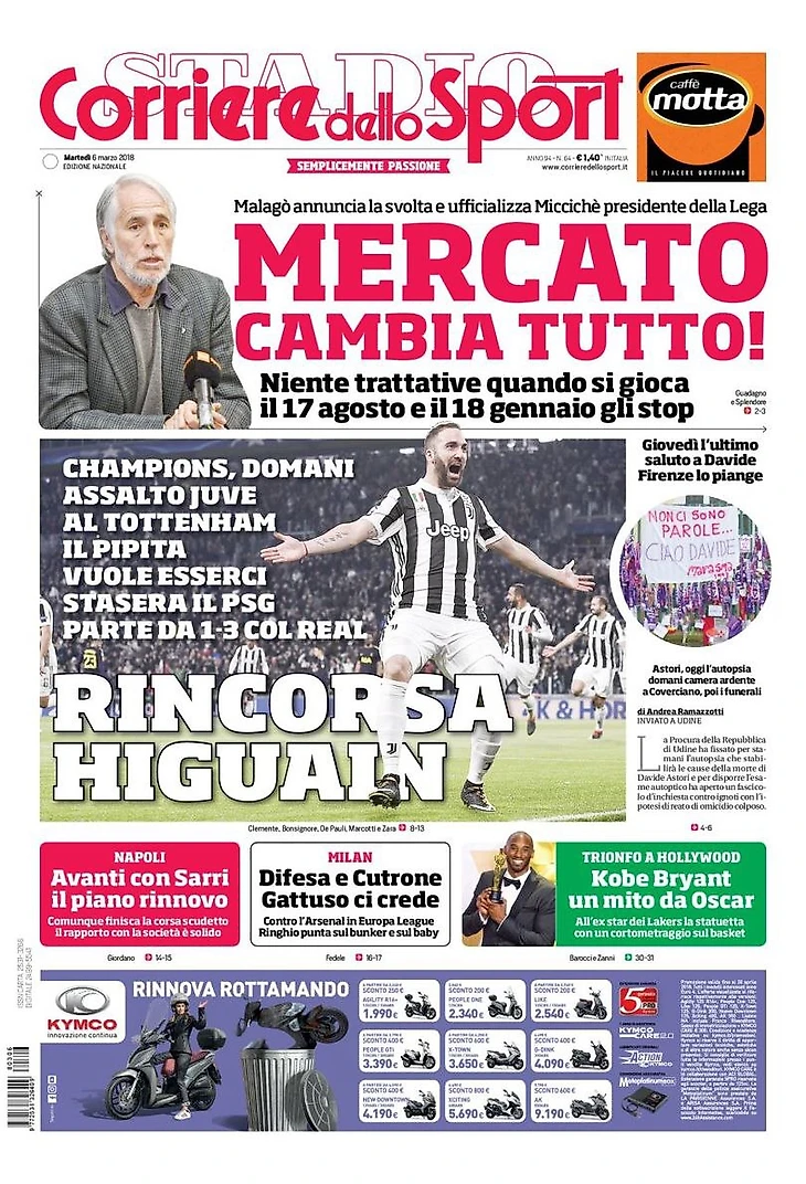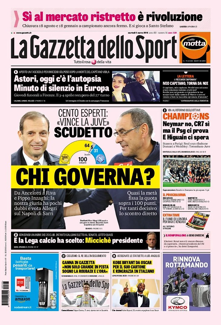 Разбег Игуаина. Заголовки Gazzetta, TuttoSport и Corriere за 6 марта
