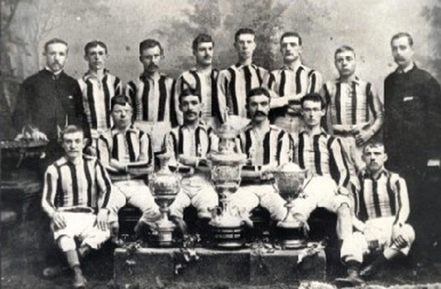 «Болтон Уондерерс» с Кубком Ланкашира (по центру), сезон 1885/86