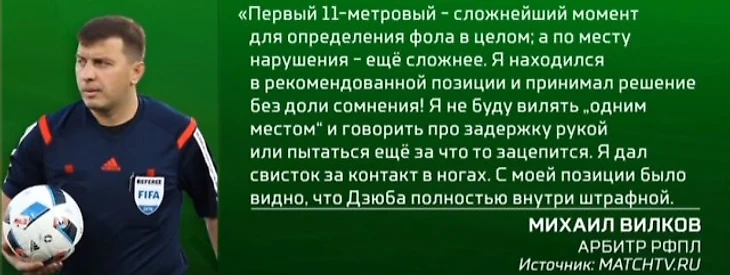 Вилков долго ждать себя не заставил, уже в дебюте поставив левый пенальти(что сам потом признал в СМИ и в звонке в программу "Свисток").