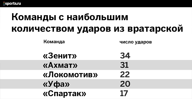 По доле ударов из вратарской «Уфа» и вовсе вторая, лучше только «Ахмат».