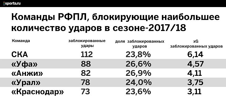 - Количество заблокированных ударов не связано с результатом, если считать сезон-полтора. Какая-то стилистика, последствия низкой обороны и не более. Ну Анжи еще больше блокирует, и что?