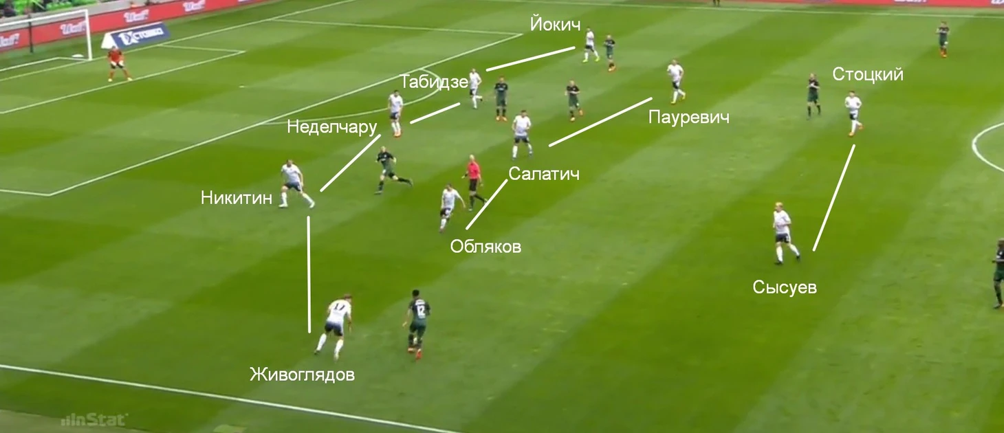 В игре с «Динамо» Семак сделал ставку на правый фланг (37% атак) – там у соперника как раз дебютировал Константин Рауш. При позиционной атаке Живоглядов поднимался очень высоко, а Тумасян играл скорее как правый защитник, подключаясь глубоко на чужую половину.