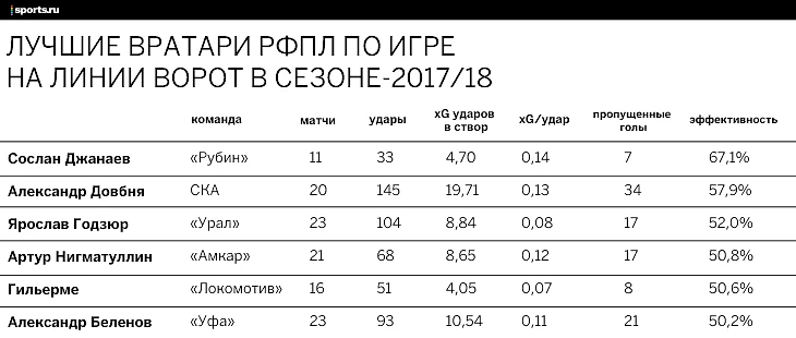 Эффективнее Беленова (по соотношению xG ударов в створ к пропущенным мячам) играют пять вратарей, но Сослан Джанаев и Гильерме провели меньше матчей. Прошлой весной Беленов пропустил 3 гола в правый нижний угол после ударов из-за штрафной (плюс 1 мяч с линии). Теперь с дистанции Беленова практически не пробить – 1 пропущенный гол после 140 ударов.