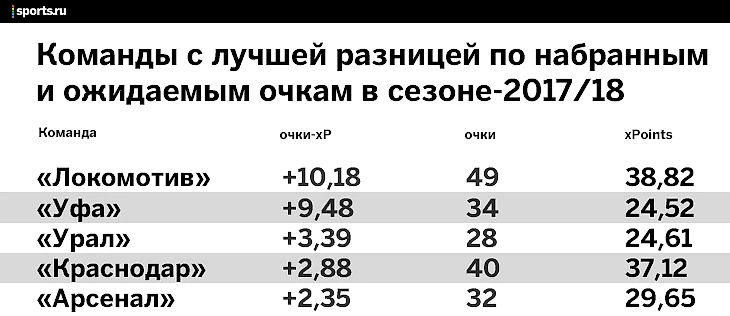 Семака можно понять. «Уфа» – системная команда, которая благодаря своевременным решениям тренеров, тактической строгости и везению насмехается над большинством статистических показателей. По разнице набранных и ожидаемых очков (они рассчитываются из качества созданных и допущенных моментов) «Уфа» занимает 2-е место в лиге. То есть «Уфа» набрала намного больше, чем должна была по законам продвинутой статистики.