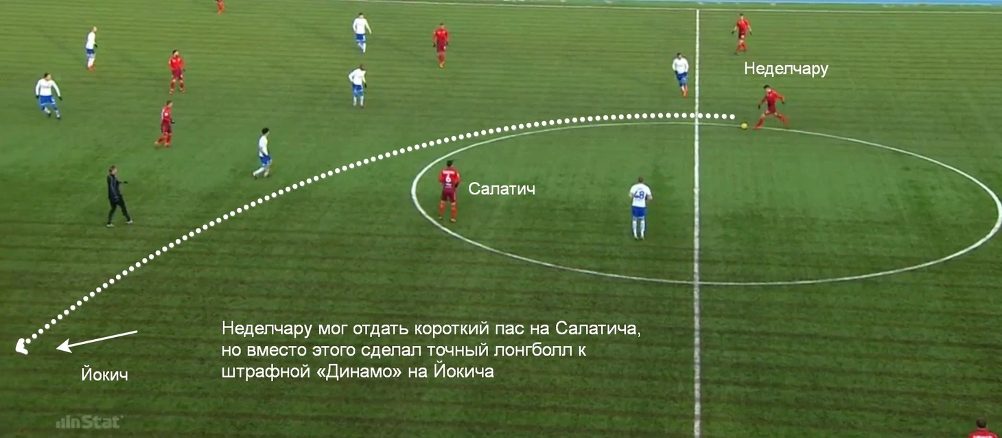 Йокич делает 3,1 подачи за матч (19,3% точности), Живоглядов – 2 (30,0%). Особенно активны латерали были в игре с «Динамо»: Боян сделал 8 кроссов, Живоглядов – 6. Позиции, из которых Йокич и Живоглядов делают навесы, похожи, но мяч у них оказывается после разных розыгрышей. Живоглядов забегает за спину левому защитнику, а за длинный пас на ход Дмитрию отвечает правый центральный защитник (Тумасян или Никитин), а также Салатич и Пауревич.