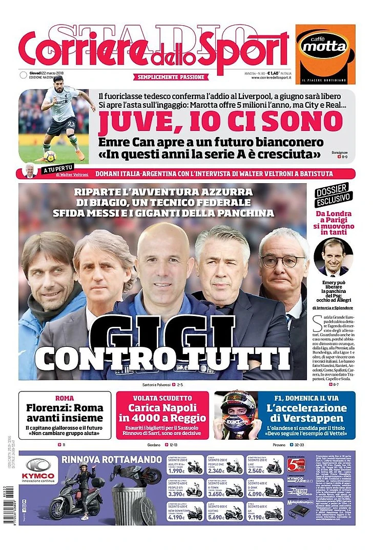 Джиджи против всех. Заголовки Gazzetta, TuttoSport и Corriere за 22 марта
