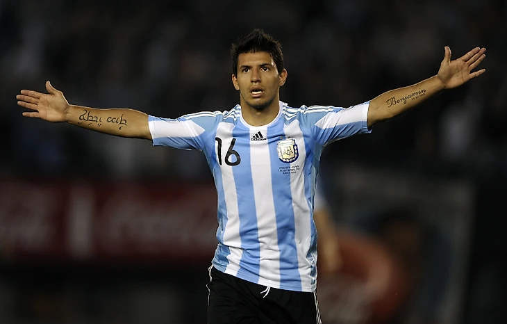 Начнём с левой руки нападающего Манчестер Сити и сборной Аргентины. На ней написано имя первого ребёнка футболиста-Бенджамина. По этим именем дата рождения первенца.