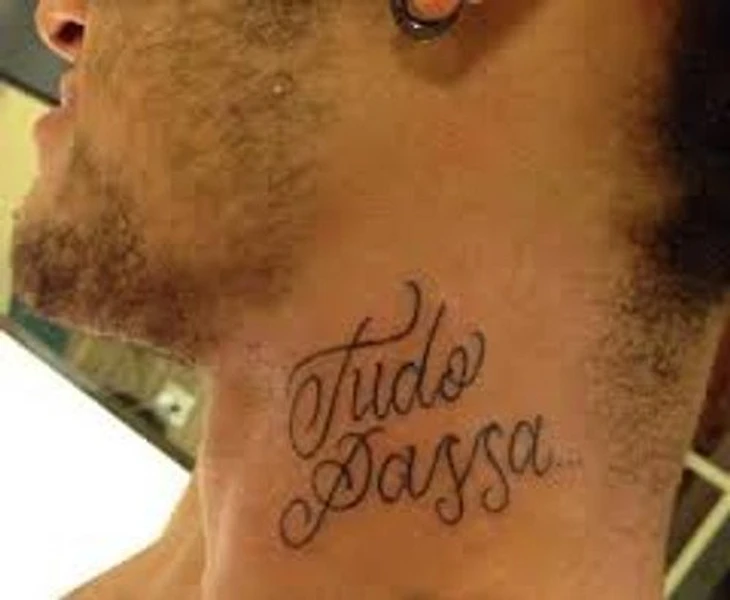 1. Шея Неймара украшена надписью "Todo passa". В переводе на русский-Всё проходит.