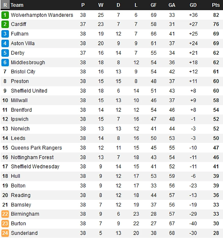"Фулхэм" и "Астон Вилла" плотно оккупировали 3-4 строчки. Про эти 2 команды с уверенностью можно сказать, что они будут биться в плей-офф за 3 путевку в АПЛ. По-хорошему, финал данного мини-действа как раз должен разыгрываться между данными коллективами. Очень жаль, что кому-то придется снова оставаться на сезон в Чемпионшипе. Не знаю кто как, но я хочу, чтобы "Фулхэм", наконец-то вернулся в вышку. Да и коллектив у них очень симпотичный, чего стоит только молодой талант Райан Сессеньон. Да и тренер Славиша Йоканович очень толковый, на него и клубы АПЛ засматриваются, причем даже некоторые именитые.