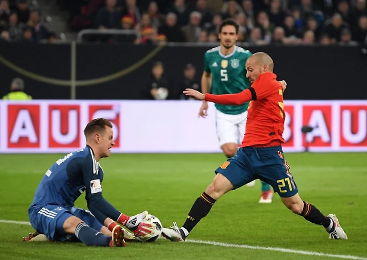 Германия начала второй тайм очень мощным напором, в одной из атак даже мяч не выдержал силы удара и сдулся. Однако все выстрелы по воротам Де Хеа оказались холостыми. У гостей тоже не получалось выйти вперед: ушел с поля Иньеста, пропала и магия. Да и частые замены не позволяли испанцам сконцентрироваться.