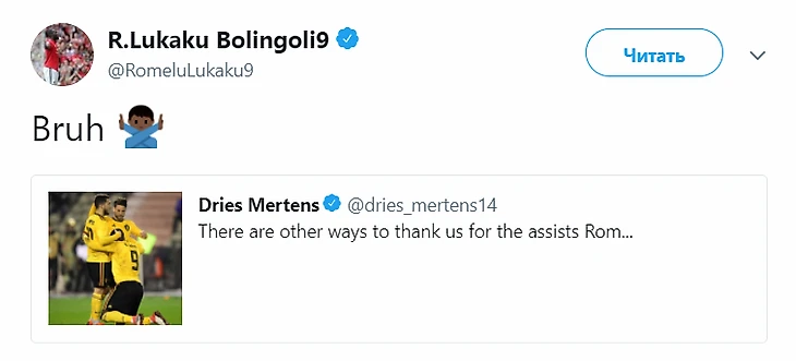 «Есть другие способы отблагодарить нас за передачи». Мертенс троллит Лукаку
