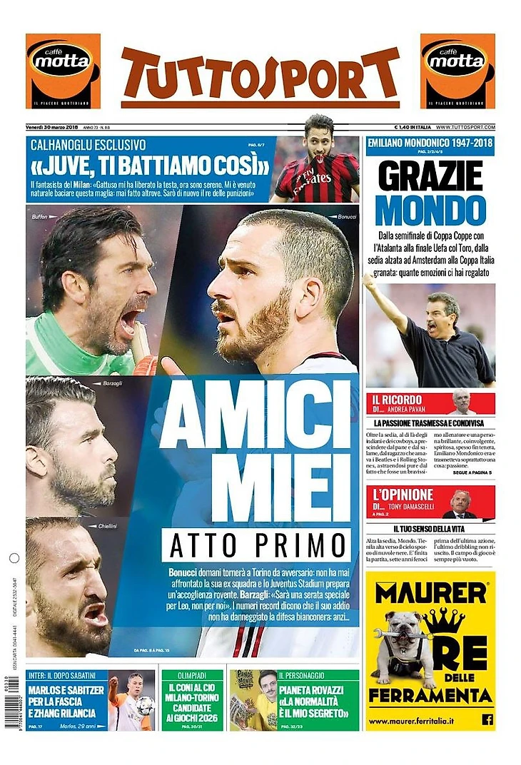 Бонуччи завтра вернётся в Турин в качестве соперника: он никогда не противостоял своей бывшей команде и «Ювентус Стэдиум» готовит горячий приём. Бардзальи: «Будет особенный вечер для Лео, но не для нас». Рекордные цифры говорят, что его уход не повредил оборону Бьянконери: однако…