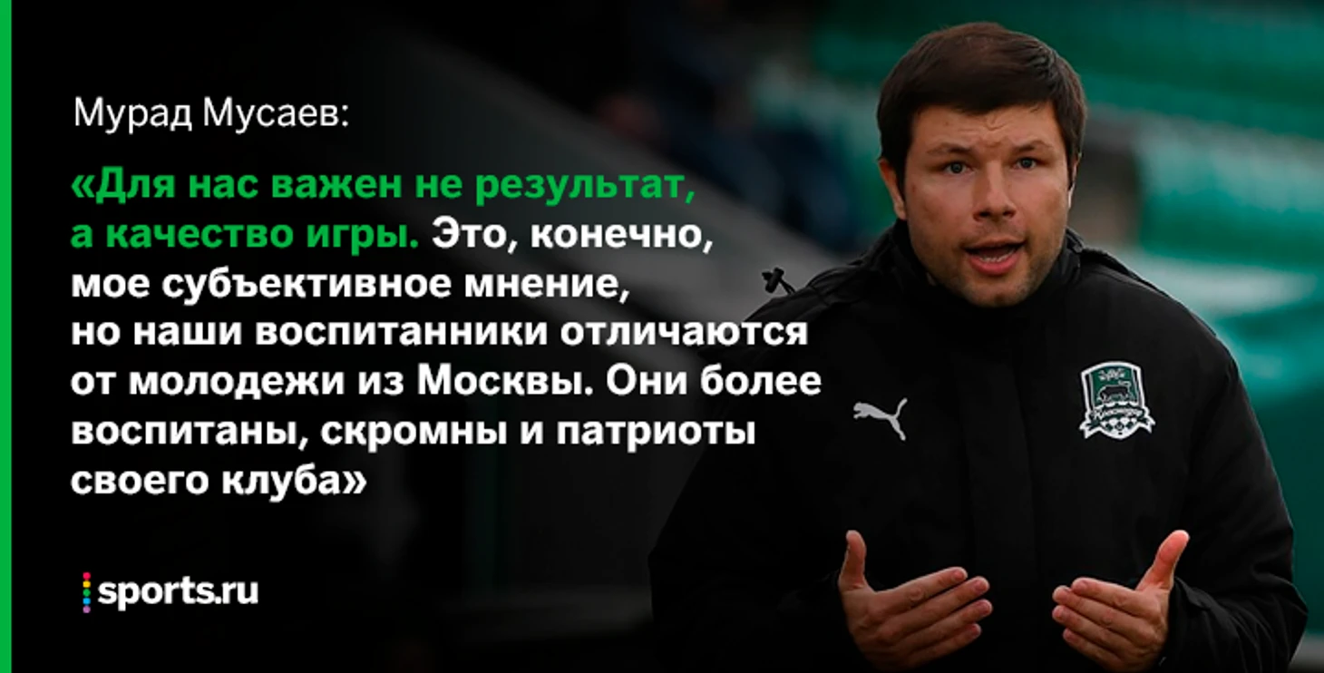 • Мусаеву 34 года. Последние шесть лет он работает тренером в системе «Краснодара». Вел команду 1999 года рождения. Игравшие в ней Иван Игнатьев, Даниил Уткин, Матвей Сафонов и Магомед-Шапи Сулейманов уже дебютировали в основе «Краснодара», забивали в премьер-лиге и еврокубках.