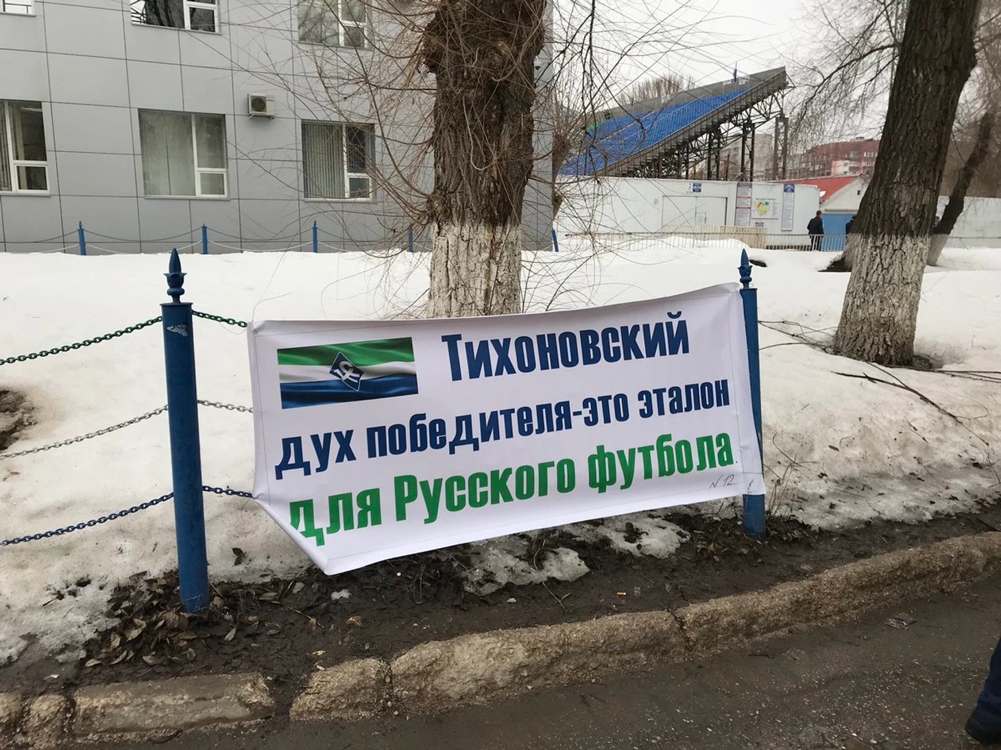 "Тихоновский дух победителя – это эталон для русского футбола" – такой баннер красовался у входа на стадион.