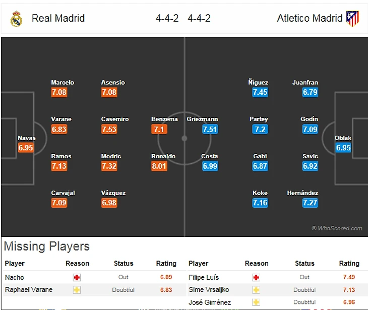 Впрочем у королевского клуба тоже в обороне не всё гладко. Все упирается в туманное состояние здоровья Рафаэля Варана(6,5), который только сегодня вернулся в общую группу. Зато с Начо(6,5) всё предельно ясно - универсальный солдат выбыл до конца апреля из-за травмы. Первой кстати в карьере.