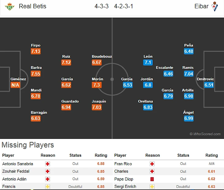 В Эйбаре схожие проблемы нарисовались в линии атаки: Шарлес(6,5) заработал перелом в прошлом туре, Энрич(7) мучается с мениском и в обоих случаях может случиться так что в этом сезоне на поле форвардов мы больше не увидим.
