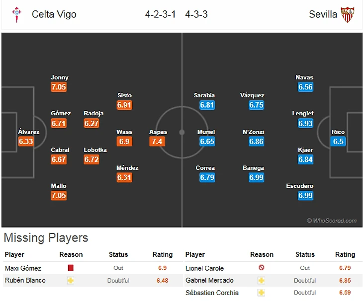 Еще одна приятная новость для хозяев - выздоровление основного кипера галисийцев Рубена Бланко(5,5). Вчера вратарь наконец-то вернулся в общую группу и готов помочь своей команде в этом туре. А вот Эмре Мор(7) напротив тренировался отдельно от основного состава и в заявку естественно не вошел.