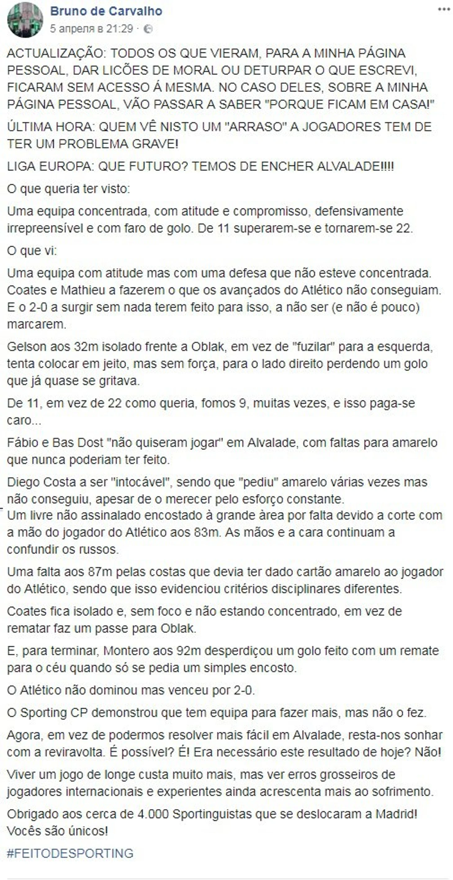Чуть позже Карвалью этот пост всё же удалил, но как отстранение игроков всё е состоялось.