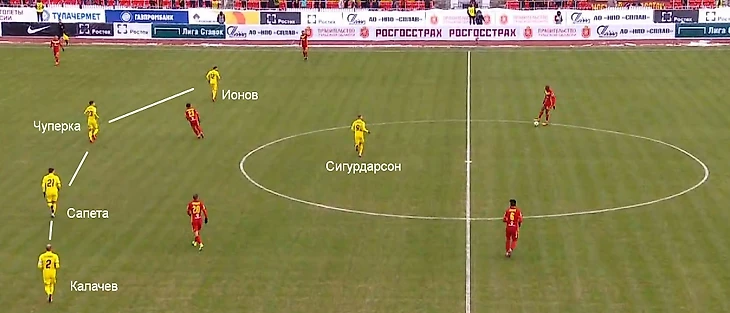 При Карпине «Ростов» продолжает играть с пятью защитниками. В первом весеннем матче в центре действовала тройка Макеев – Ингасон – Вилюш, но после поражения от «Краснодара» Карпин передвинул Ингасона на позицию правого центрального защитника, а страхующим стал Сигурдссон.