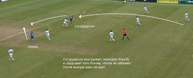За 90 минут Сигурдарсон вступает в 16 верховых единоборств, 38% из них выигрывает. Это 4-й результат лиги среди нападающих – лучше только Зе Луиш (53%), Дзюба и Заболотный (по 50%). Сигурдарсон отлично сыгрался со вторым нападающим «Ростова» Алексеем Ионовым: Бьорн борется за верховую передачу, Ионов забегает ему за спину под скидку. Так исландец создал выход один на один в игре с «Зенитом».
