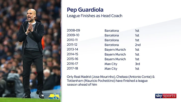 За всю свою недолгую карьеру Гвардиола выиграл семь чемпионатов из девяти возможных, став третьим тренером в истории футбола, который побеждал в трех топ-лигах. Фантастический результат!
