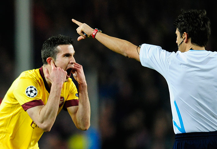 Ван Перси доказывает, что он не слышал свистка. Может и не слышал при таком шуме на стадионе. Но арбитр решение не меняет.