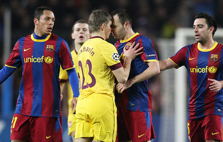 Аршавин пободался с Иньестой. А лучше бы гол забил...