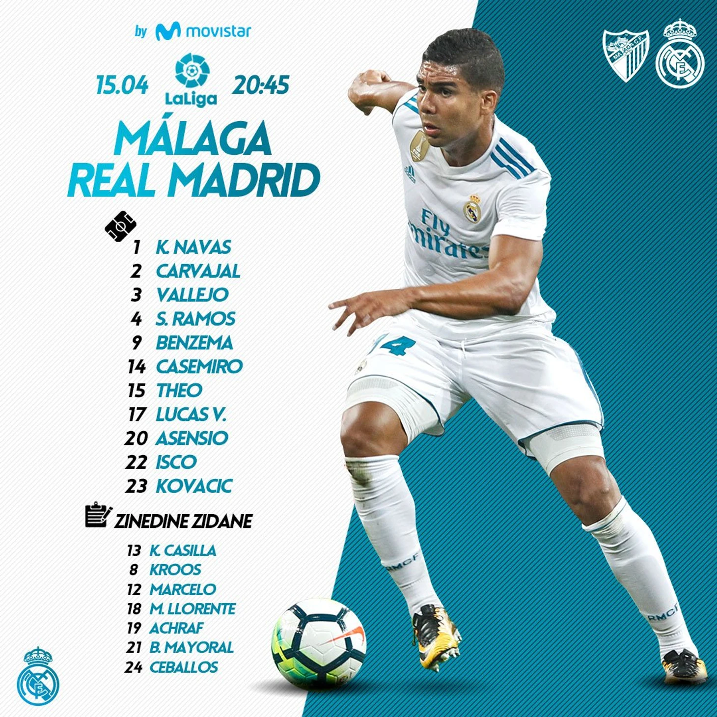 Этот матч пропускали Роналду, Варан и Бейл, которым предоставили отдых после матча с Ювентусом. Также в Малагу не полетел и Модрич, он получил в матче Лиги Чемпионов небольшое повреждение.