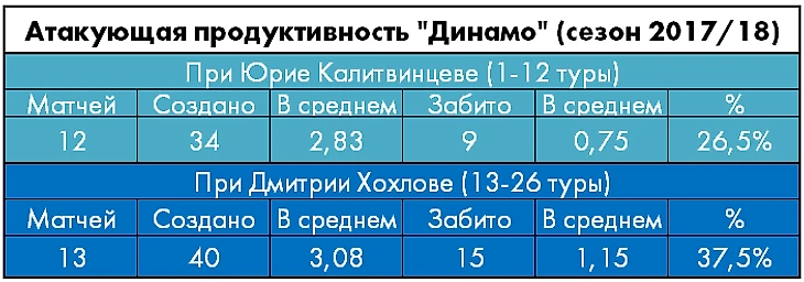 После невразумительного старта чемпионата, по ходу которого бело-голубые никак не могли справиться с «голевой засухой» и забивали строго через два матча на третий, в «Динамо» произошла логичная тренерская рокировка. На то, чтобы выправить ситуацию Дмитрию Хохлову потребовалось не так много времени, и во втором круге план спасения команды, наконец, заработал как следует.